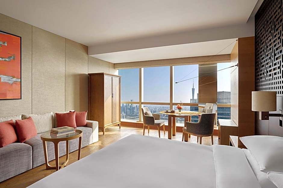Thoughtful 109 sq m (1,173 sq ft) room with separate living area plus Guangzhou Pearl River Delta and city skyline views. The bedroom features one king bed (1.8 x 6.6 ft). The hotel’s guestrooms are the embodiment of livable luxury, surprising and delighting the hotel’s distinguished guests with an appealing blend of sophistication and upscale residential comfort. For the room rate including breakfast, guests can enjoy breakfast at the Dining Room on 65F every day. Other guests to enjoy breakfast, an additional fee of CNY 258 per person is required, which can be paid at the property.